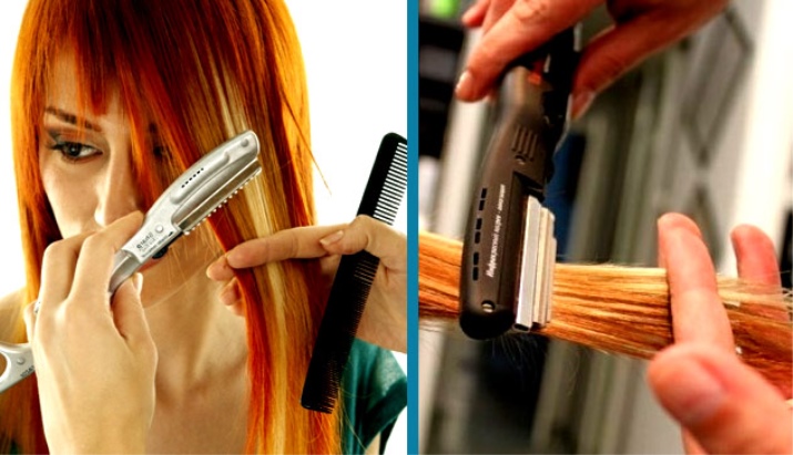 Thinning are not only scissors, but also special razors. They have a small blade set between two teeth plates. As a rule, these tools come complete with several nozzles needed for different cutting techniques.