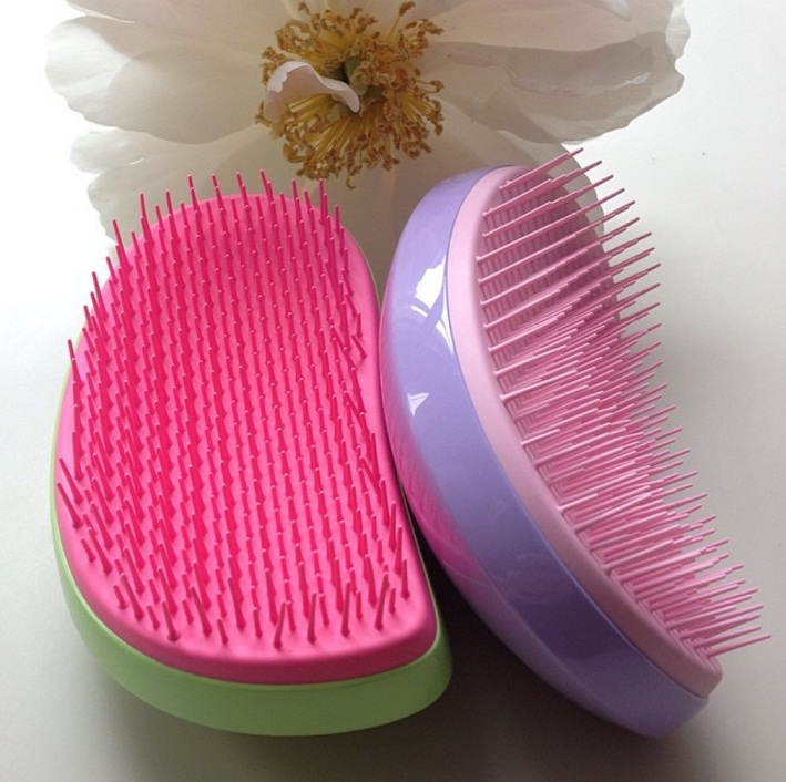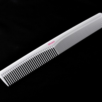 Silicone combs for daily combing vary in shape and distance between teeth, often there is a combination product, where on one side there are frequent, and on the other - rare teeth. It is quite convenient to start disentangling the hair from the rare arrangement of the teeth, and then polish the hairstyle more thoroughly with the help of a frequent comb.