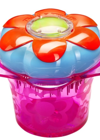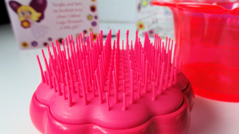 Baby hairbrush, which was created specifically for little princesses. There can be no doubt, because it is a comb in the form of a flower. She also has a deep lid in which hair ties are stored.
