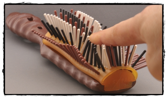 - Hairbrushes, in which there is a plate with different oils, can get rid of loose hair after frequent dyeing or chemical perms.