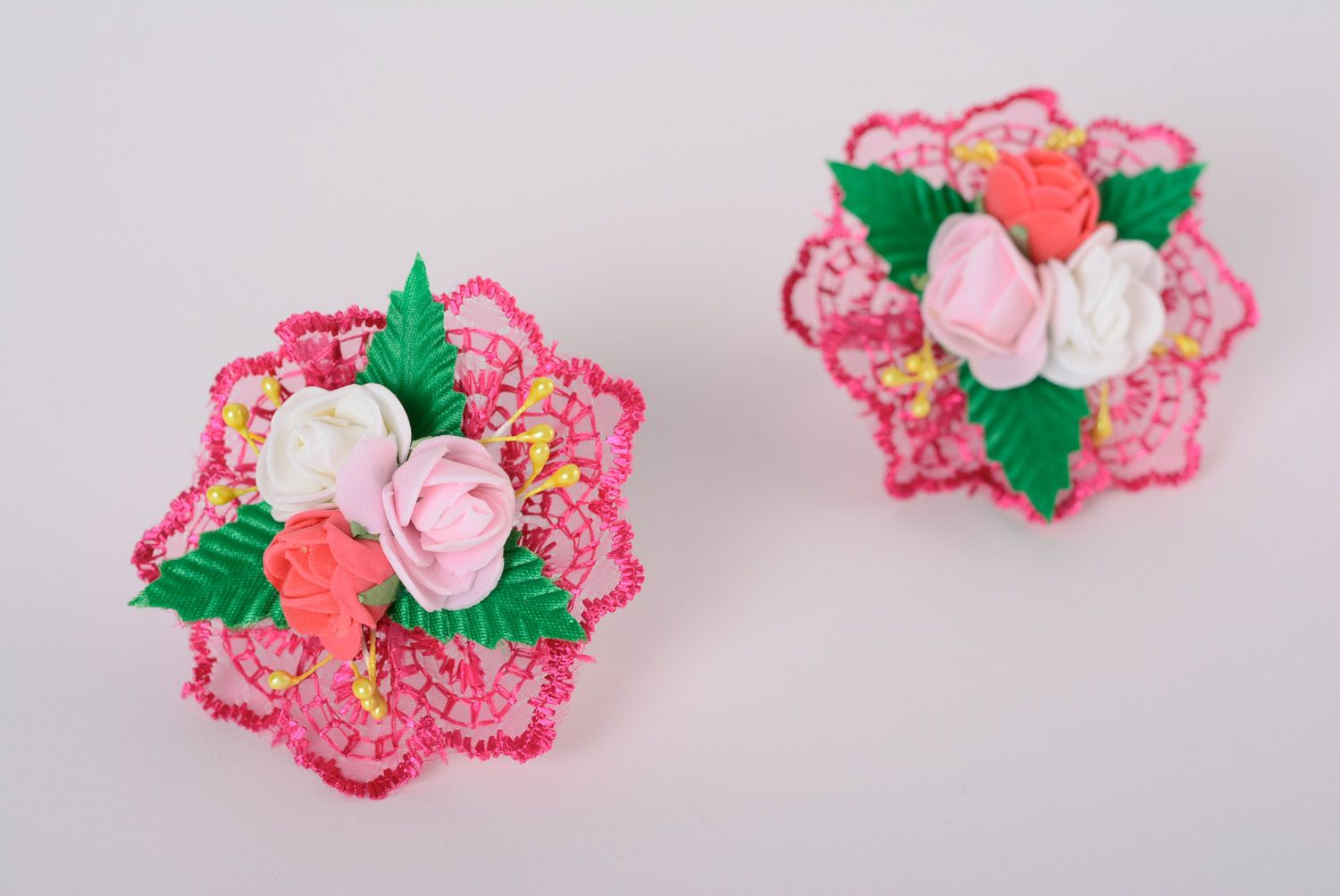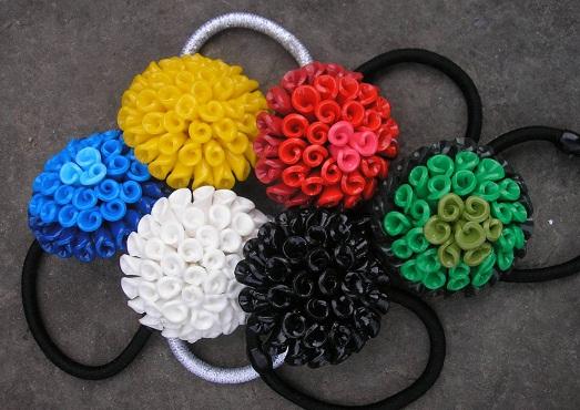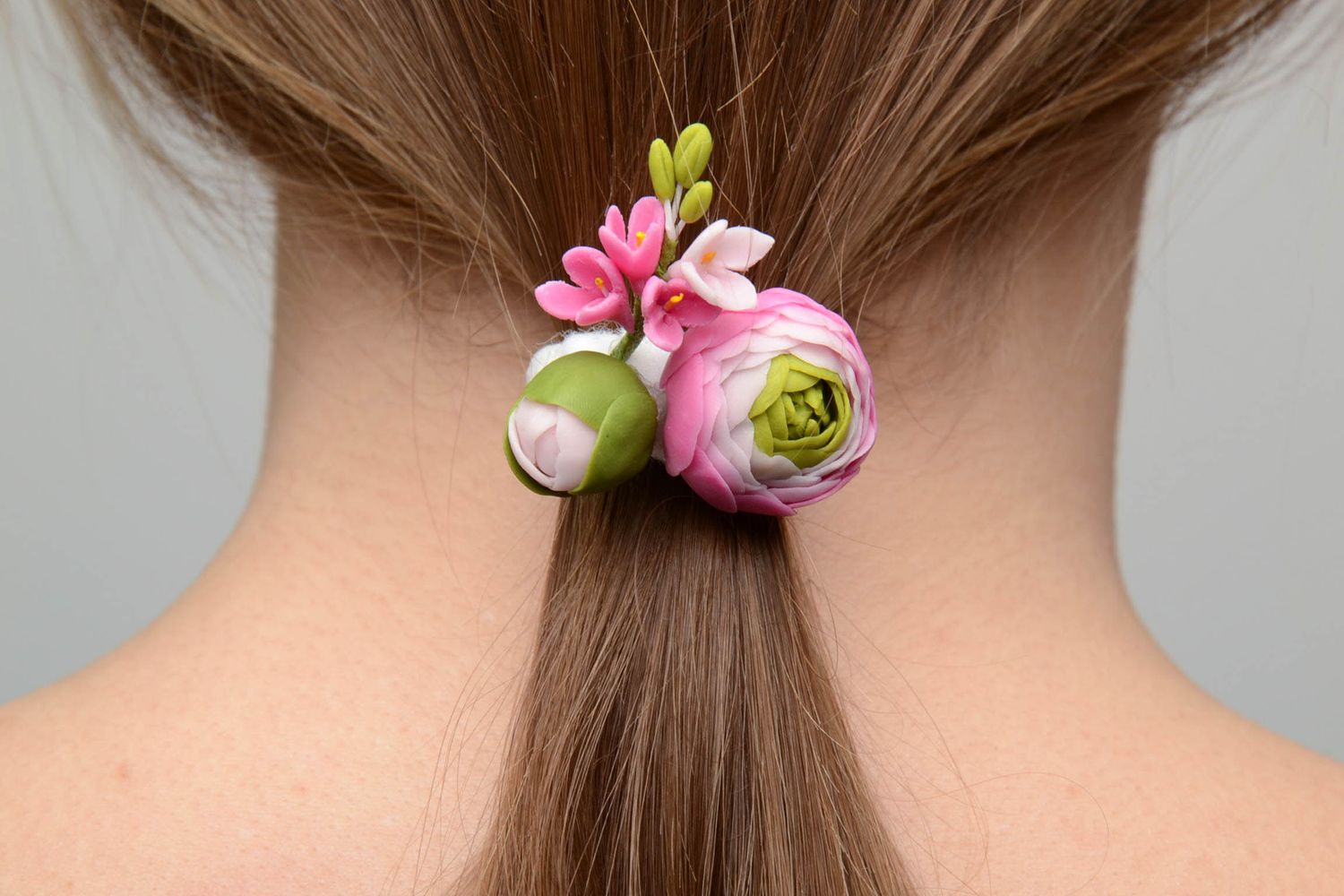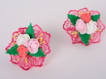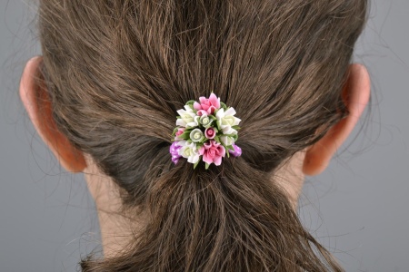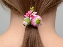 From this material make a variety of decorative elements that adorn the elastic elastics. It can be not only flowers, but also berries, fruits, insects, animals. Especially these hair ornaments will appeal to little girls.