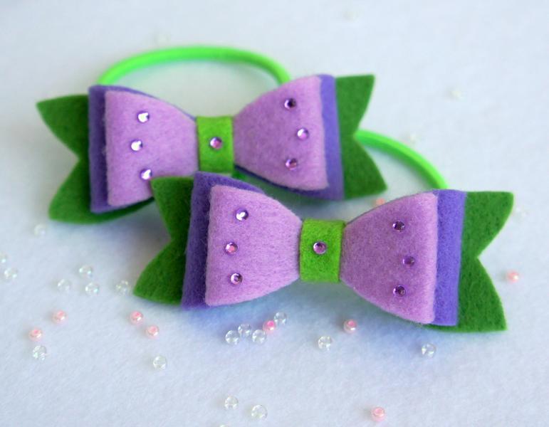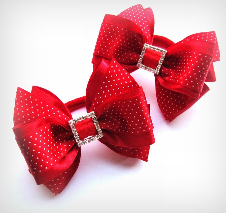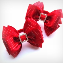 Rezinochki with bows are suitable for children and young girls, on older ladies, they look too infantile. Most often they are made of satin ribbons and fabrics, there are bows of polymer clay.