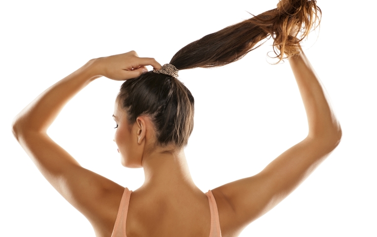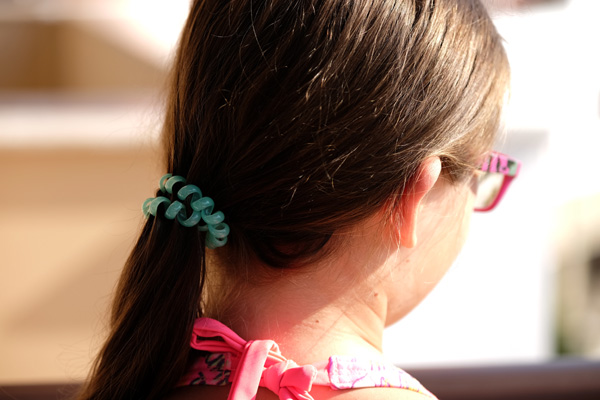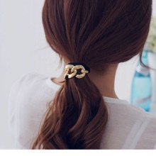In order to fix the elastic band correctly, separate the hair strand, fix the first hook in it and twist the elastic band around the tail, holding the hair strand. Then fasten the second hook, try to make them both under the tail. Additionally, the lock can be masked with a decorative accessory.