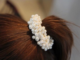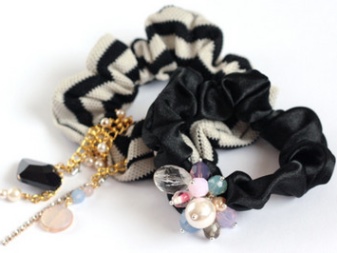 Ready rezinochki decorate a variety of decorative elements: embroidery, weaving, beads, beads, sequins, stones, rhinestones. For a festive occasion, a spectacular hairpin with pendants is suitable.
