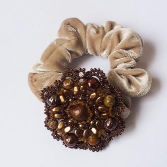 Beads - an inexhaustible material for creativity, it is difficult to name the kind of needlework, where beads could not be used. From it make decorative elements - flowers, butterflies, bows, which adorn the gum. Also, beads are sewn on volumetric gum from fabric, it turns out a beautiful option for every day.