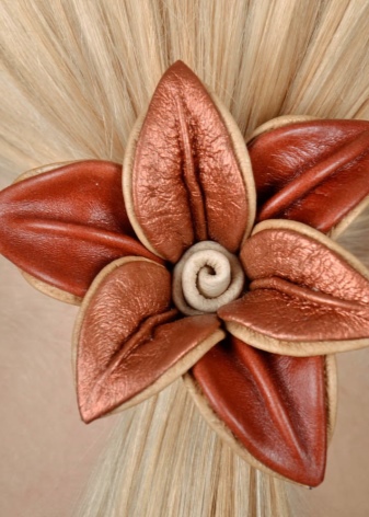 - Relevant gum with leather inserts in the form of flowers. They are perfectly combined with a slightly careless tattered tail or pigtail.