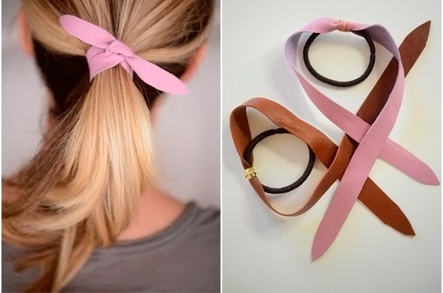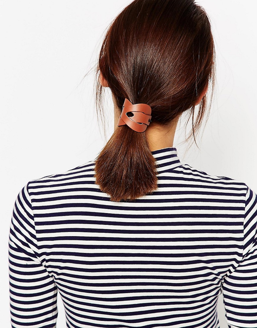 Elasticated leather looks very stylish and great for everyday wear. You can choose a skin of a contrasting color or under your hair color, if you want it to be invisible on the hair.
