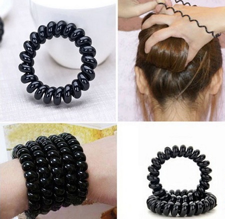 Today everyone knows the elastic spring for hair. Depending on the manufacturer, they can be silicone, plastic, latex. The spiral-shaped elastic band reliably fixes even very thick hair, does not injure strands and does not cause headaches.