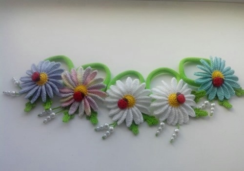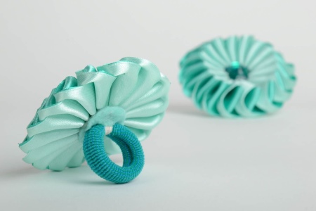 They are based on satin ribbons of different colors, additionally beads, beads, and other decorative elements are used. The most popular models are kanzashi rezinochki, satin flowers, bows.