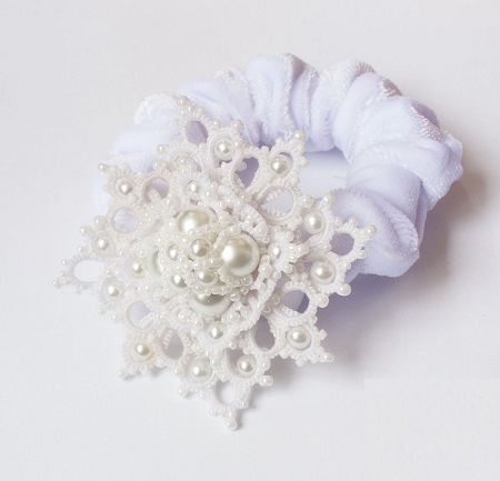The technique of tatting is hand-weaving of lace. For work the special shuttle or needles with the blunt end is used. Elastic elastics adorn the finished lace elements in the form of snowflakes, flowers, butterflies. Additionally, lace is decorated with rhinestones, beads, beads, sequins.