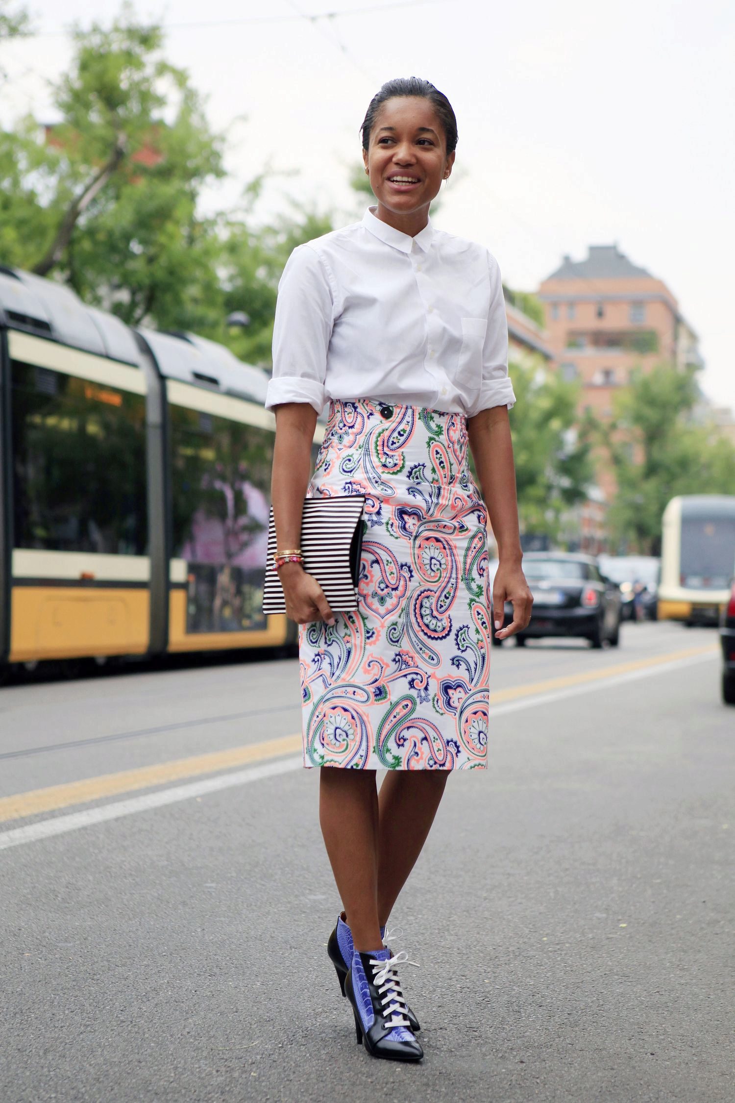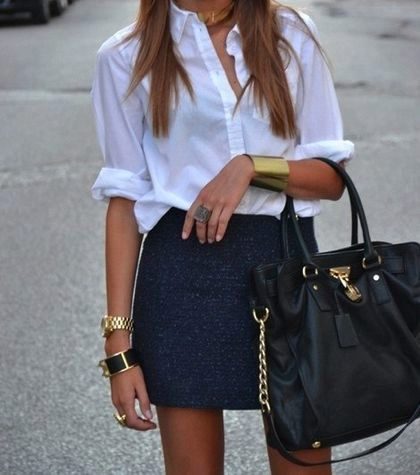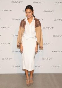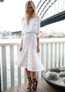 A white dress shirt may not be a bad option for a print, for example, to a party or to the theater. One has only to choose the right combination with a fluffy skirt to the floor. In this image you will look like a king, restrained and elegant.
