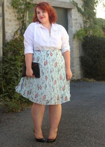 A lightweight chiffon or silk short-sleeved shirt is perfect as a summer option. With a different, floral print, or just color inserts not bright colors, the product will look fresh and unusual.