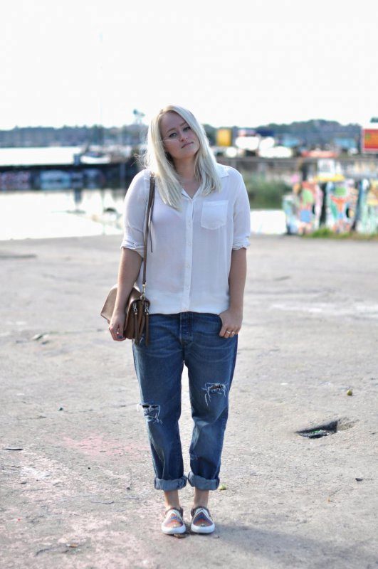The white denim shirt is somewhat similar to linen because it is made of thin denim, which is also breathable and well ventilated. Very rarely, denim models have a fitted cut, mostly they are straight or wide, loose-fitting.