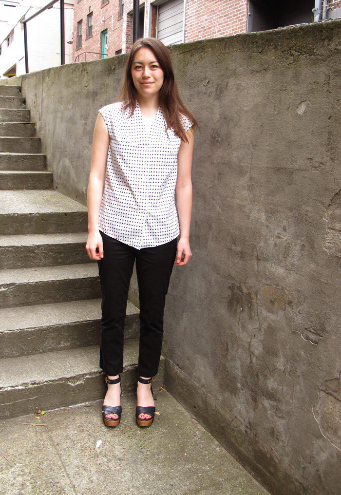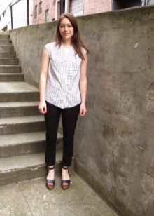 Evening version - black. You can come up with quite elegant and stylish images using a sleeveless shirt of this color.