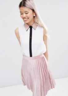 It is a silk or chiffon shirt that should underlie the image. It can be combined with pants or skirts that will attract attention. Emphasis should be placed not on the shirt, but on the bottom of the set or accessories. They can be pearl jewelry or luxury jewelry. Shoes or high-heeled sandals will be the most appropriate look from shoes.