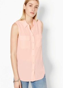 Now you can find a shirt of any color and style - with pockets, with a jabot, with a collar and without. A sleeveless shirt is the perfect choice for summer. This style suggests a free cut, but in order to emphasize the waist, you can use a thin belt. Also, when choosing a shirt, pay attention to the fact that it must reach the hip line. It is this length that will allow it to be worn when refueling and, conversely, at dressing.