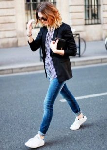 In the summer, a gentle-colored shirt and light-colored jeans will look good, and for a young girl, a set consisting of a white or colored shirt and short shorts is perfect.