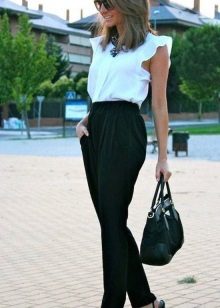 There are no problems with trousers - almost all styles will be combined with a shirt without sleeves. Find the perfect shape to show your strengths and hide flaws. For example, women with an hourglass figure can afford short, slim trousers with a high waist and high-heeled sandals - this dress will show their slim waist and beautiful legs.