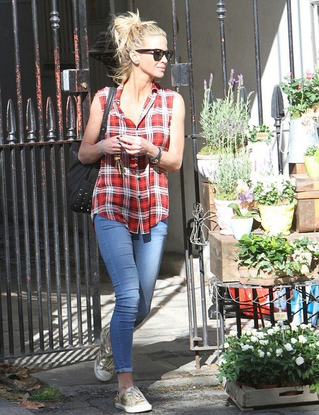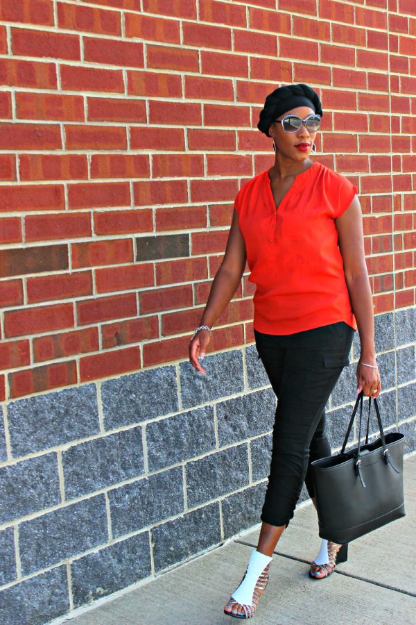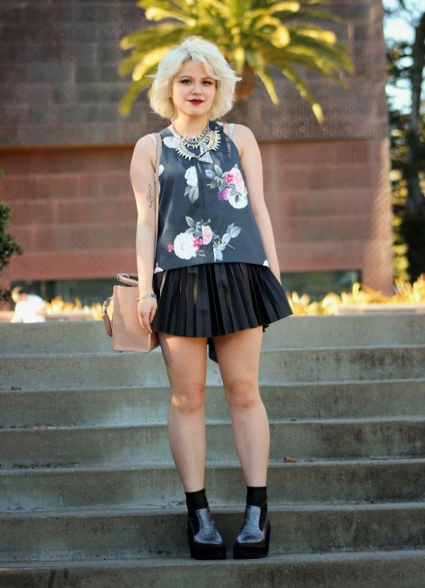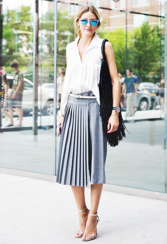 In this image there are no bright accents that allows you to wear a massive necklace that will sparkle in the sun, brown belt and brown shoes with heels.