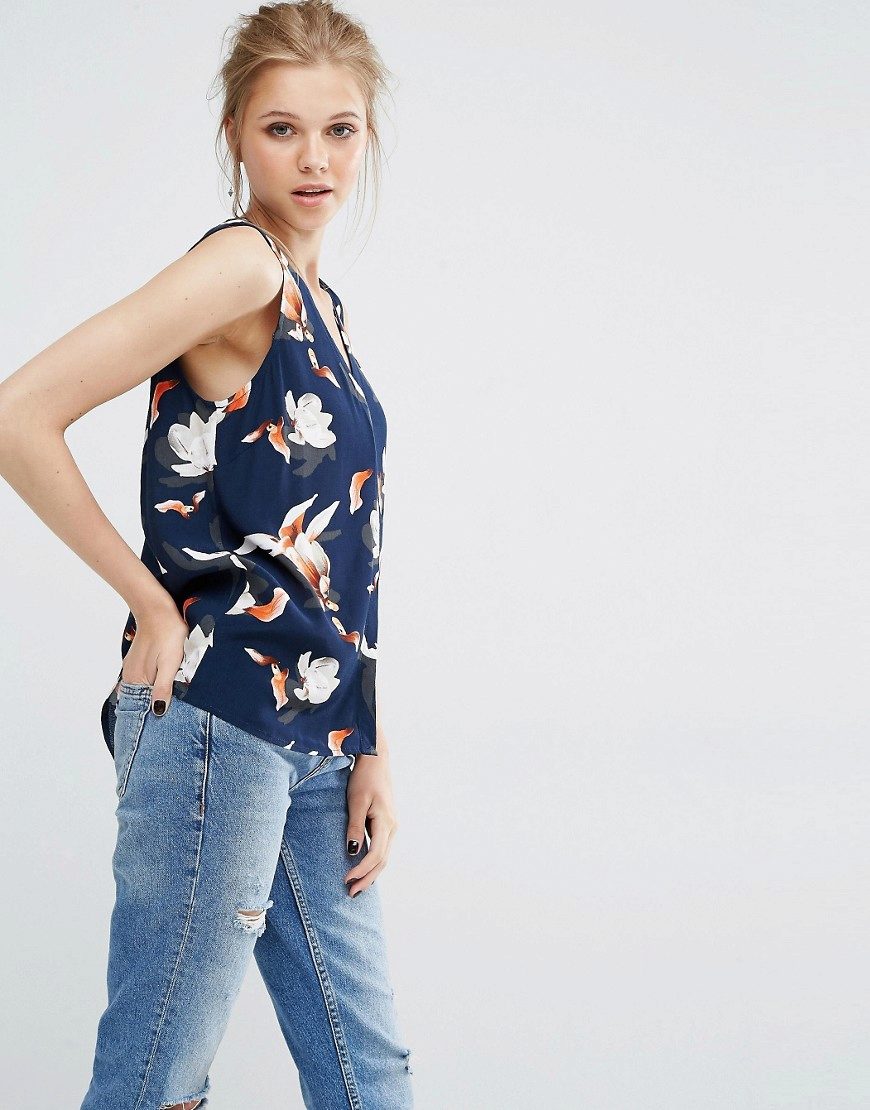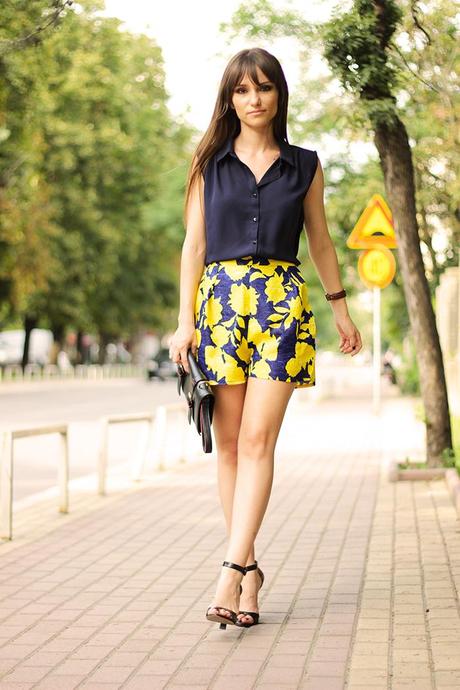 It would seem that wearing a simple dark blue cotton shirt, but how amazingly you can beat the image with an interesting print on the shorts.
