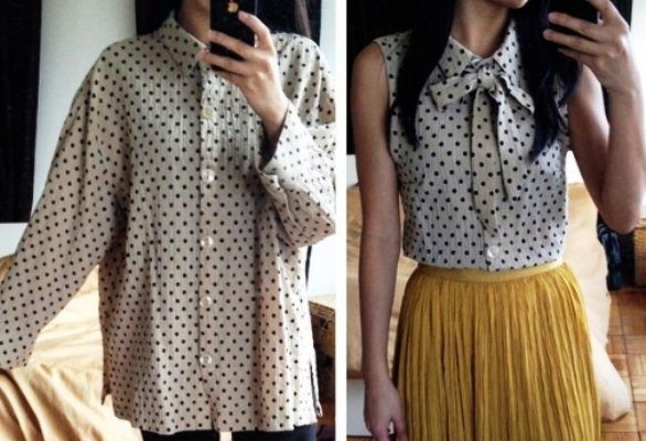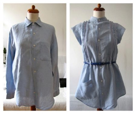 If you have an old shirt in your closet that you no longer want to wear, you can change it, “revive” and create a new interesting thing. This can be done with your husband's old shirt. If you want to get a free and light model, then you will not have any difficulties. Cut off the sleeves, add a bit of decor to the collar, if you want, and here you have a new summer shirt.
