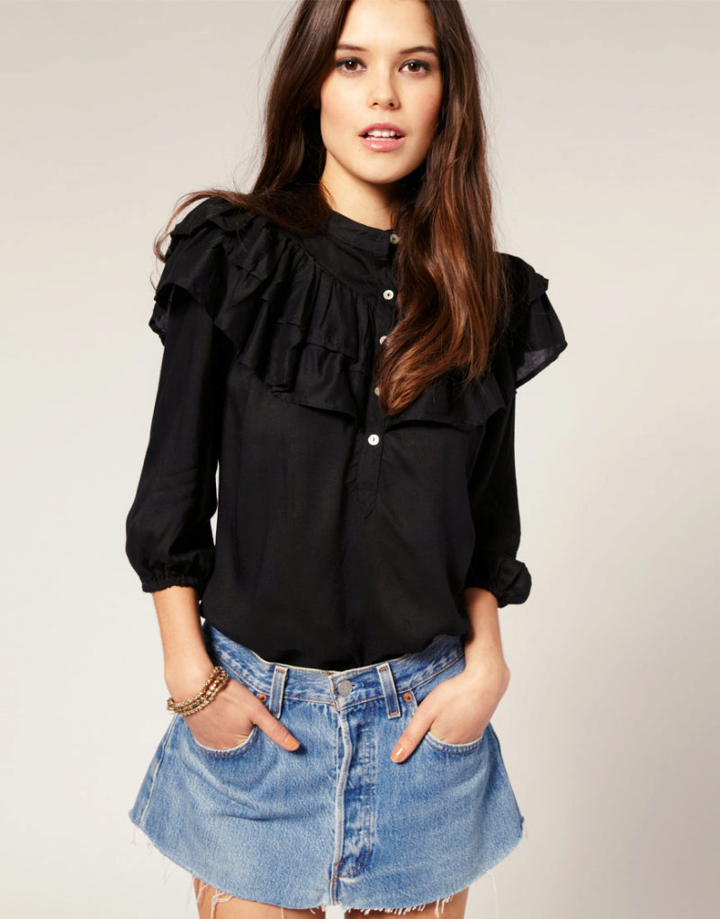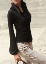 Blouse black is the perfect solution for the fair sex with an olive complexion. It will give the skin brightness and highlight the face on its background.