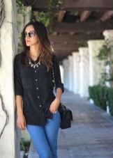 Black shirts are sewn from various natural and synthetic materials. It is necessary to give preference to natural fabrics, because they are well breathable and allow the skin to breathe. For hot summer flax shirt is ideal. It is suitable for everyday wear. In a linen blouse the body breathes. It can be combined with shorts or jeans.