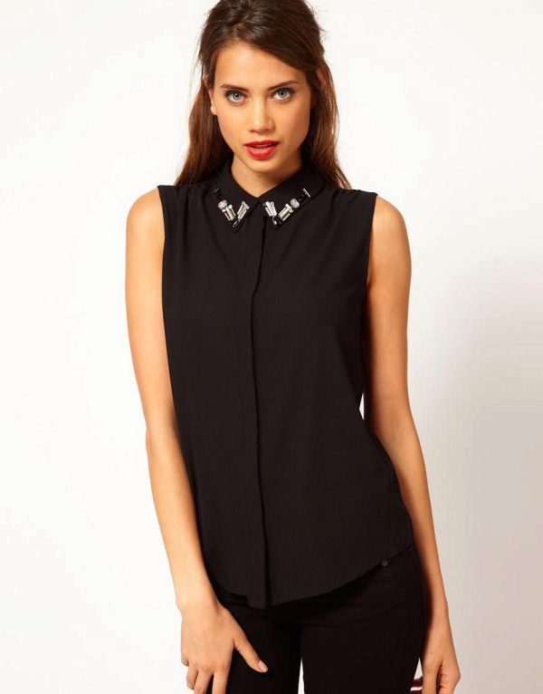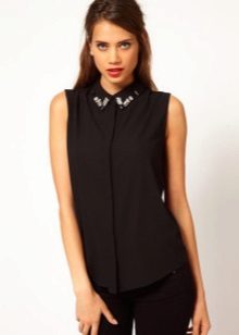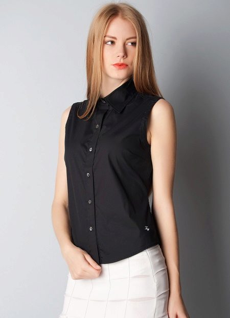 Today in a trend classic sleeveless shirts. The black model looks great in a tandem with a white bottom. The length of the blouse can be completely different. Owners of a slim figure can wear a model, opening the waist.