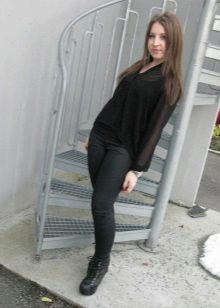Black tunic shirt refers to the basic wardrobe of not only slender beauties, but also girls with magnificent forms. It allows you to lengthen the silhouette, to hide the extra sentiment on the waist and hips. It can be worn with jeans, leggings or shorts.
