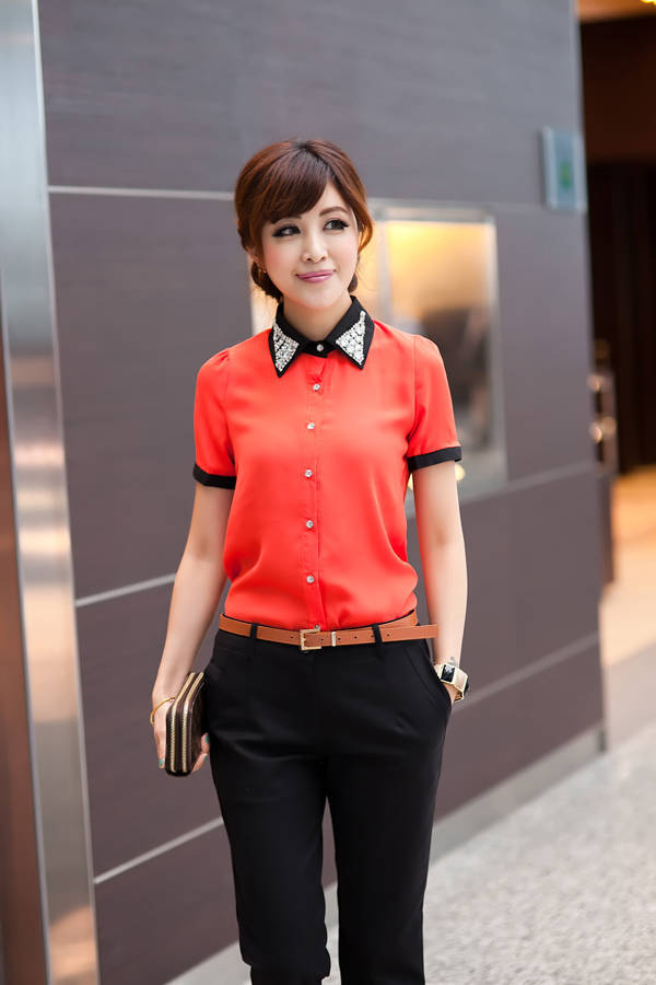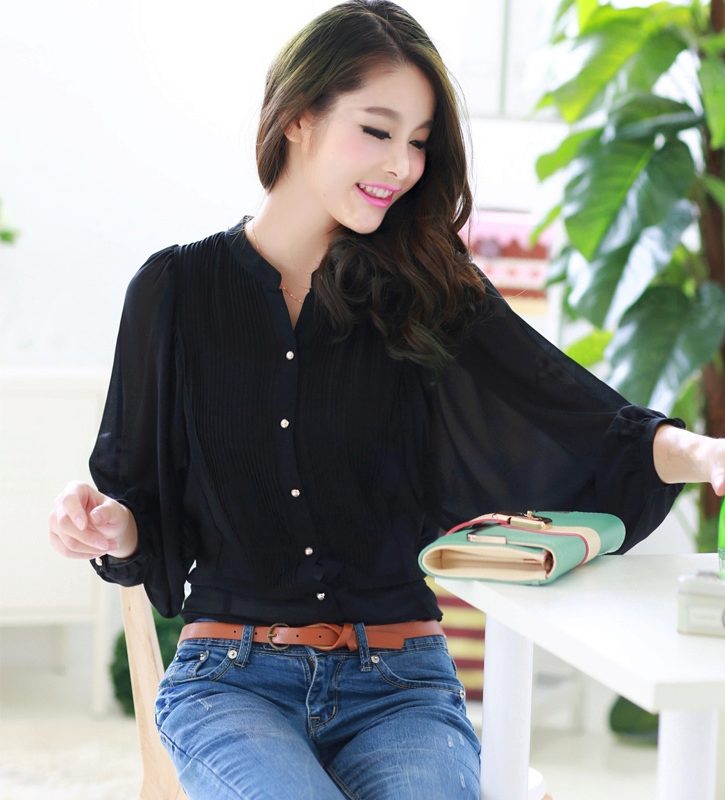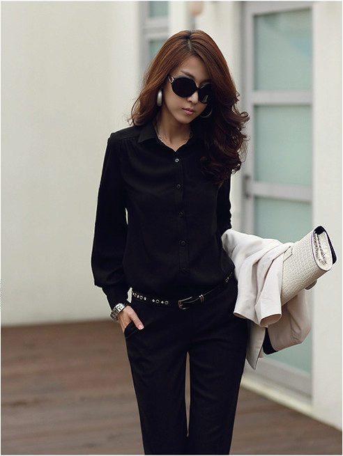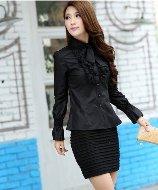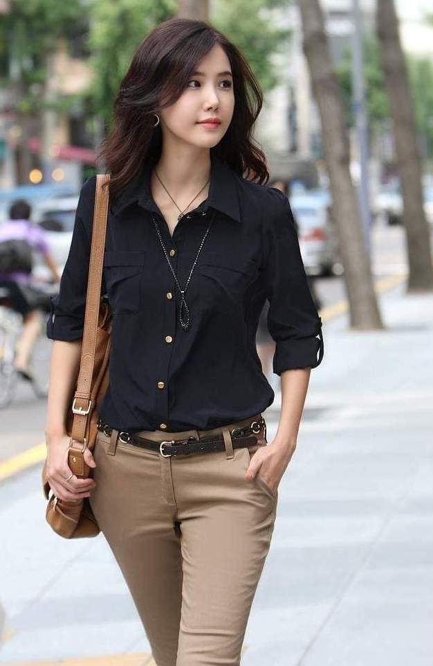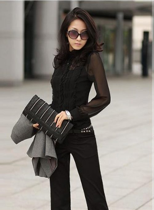 Business ladies prefer black shirts of silk, because they look elegant and rich. Silk patterns can be combined with classic trousers or pencil skirt.