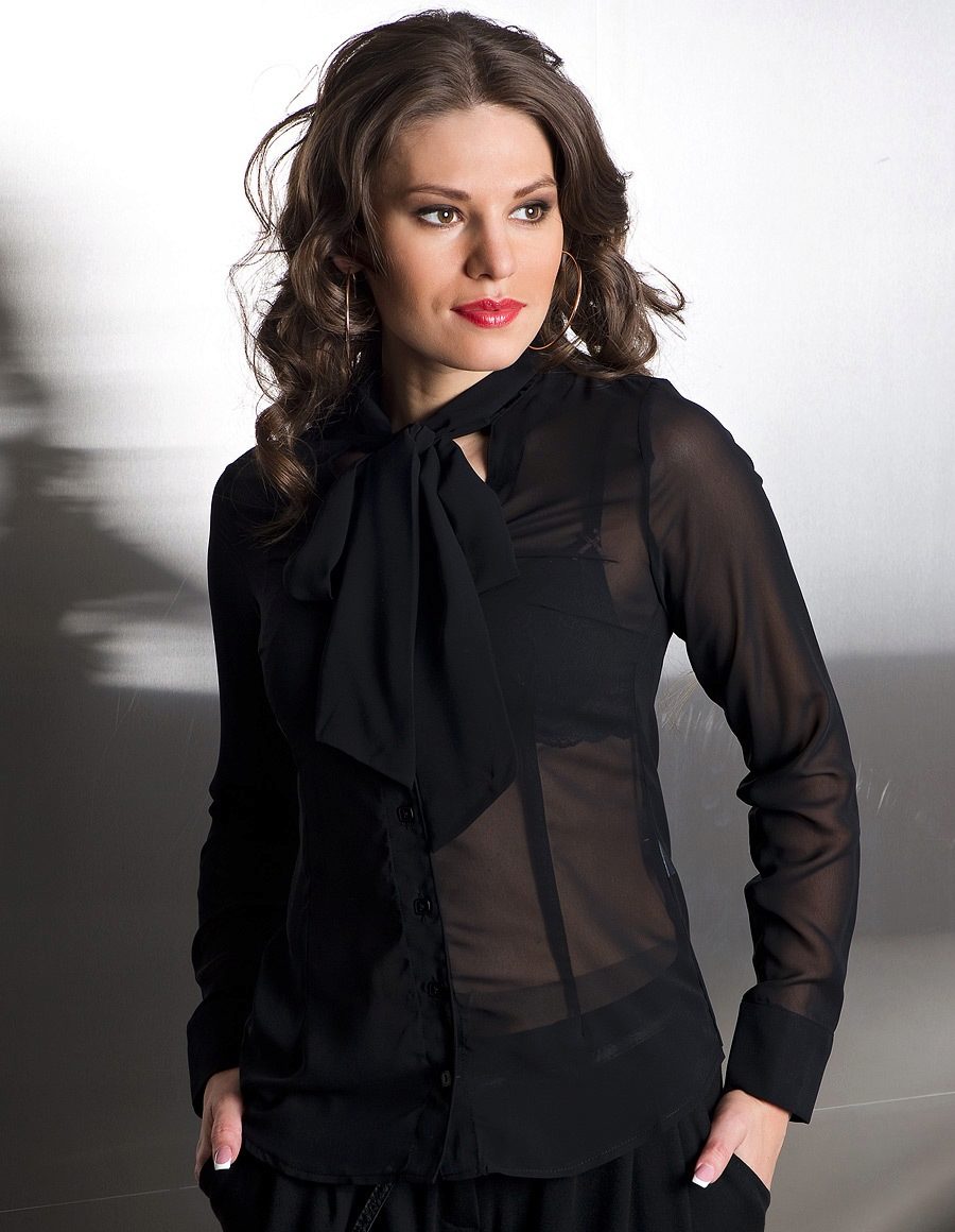 Every fashionista can choose a stylish black shirt to embody the desired bow.