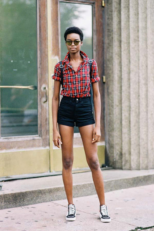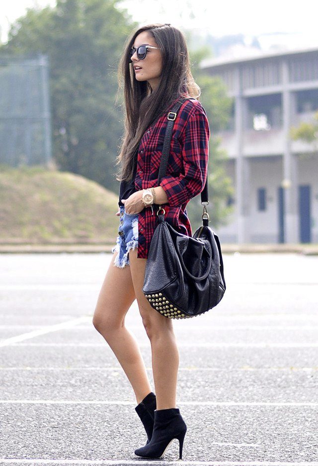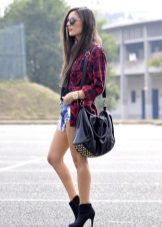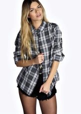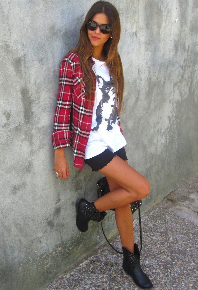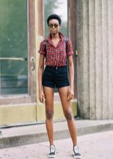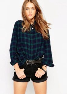 In the summer, wear a plaid shirt with shorts, suitable for both cotton or linen, and denim models. If you are a fan of grunge style, you can wear shorts in the cold season with tight black tights. In this case, it is better to give preference to leather models of the same color, which will not look like a bright spot in the image.