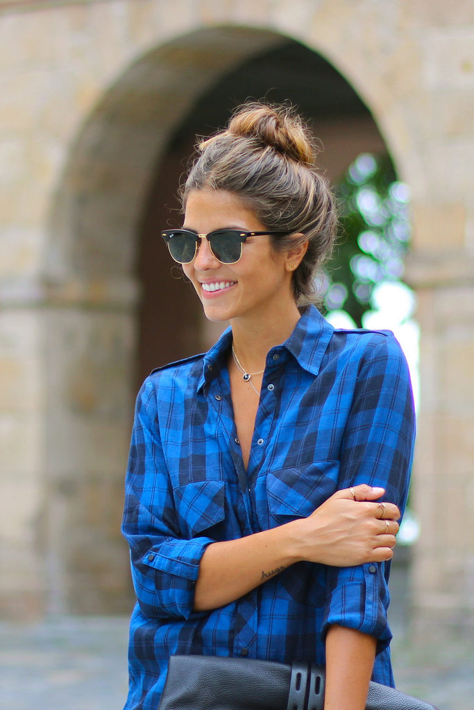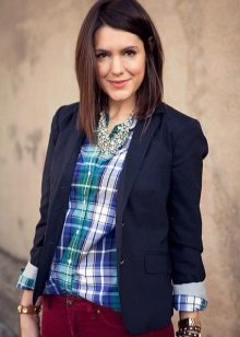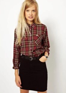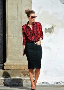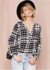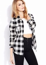 The fitted checkered shirt of a strict cut is absolutely universal. She usually has a long or twisted sleeve, a minimum of decorative elements. Therefore, depending on the color, it is suitable for work, study, walk or party. You can wear it with the same clothes with which you wear any other shirt.