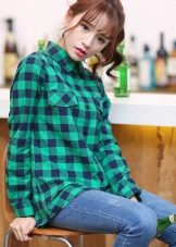 - The green square is also a kind of classic. For many, it is associated with Christmas holidays, warmth and home comfort. That is why a shirt in a green cell perfectly complements the soft cozy images in the style of grunge and street style, not overloaded with unnecessary details.