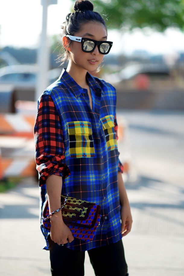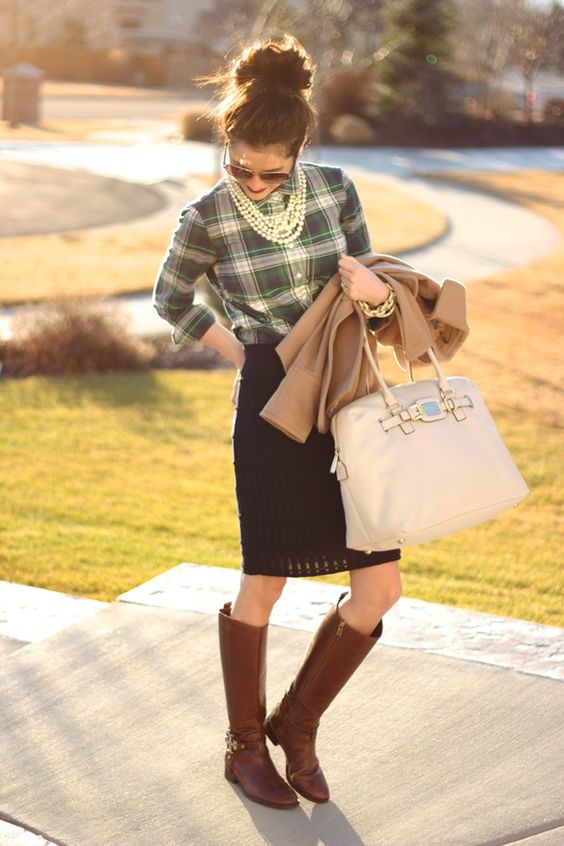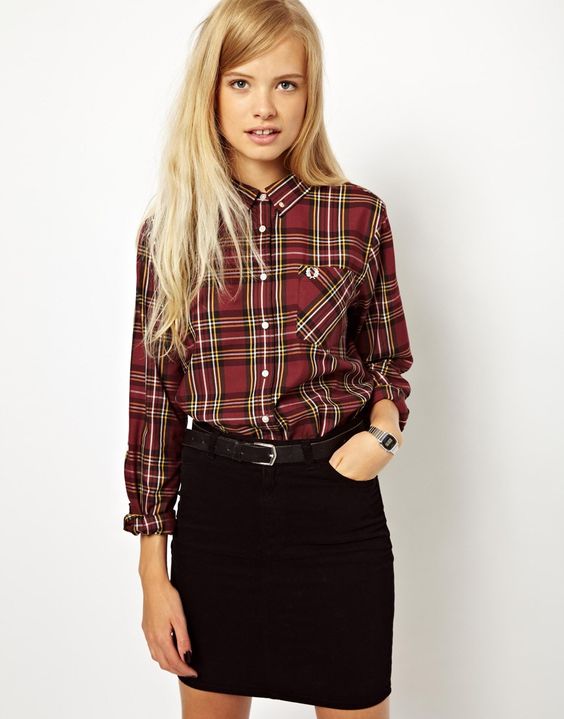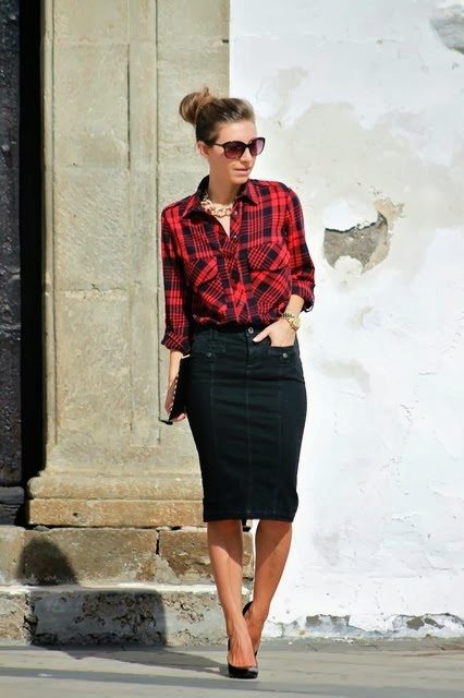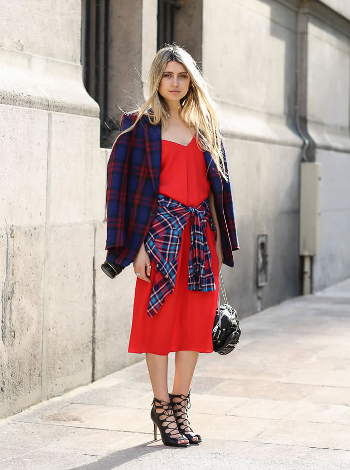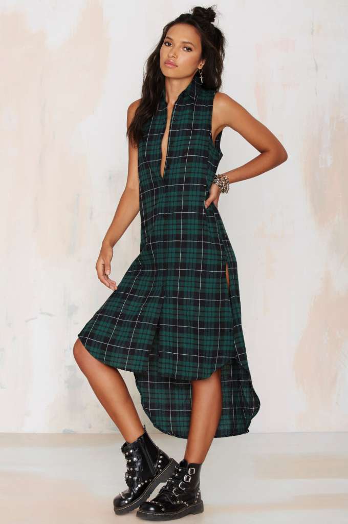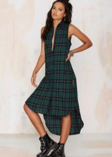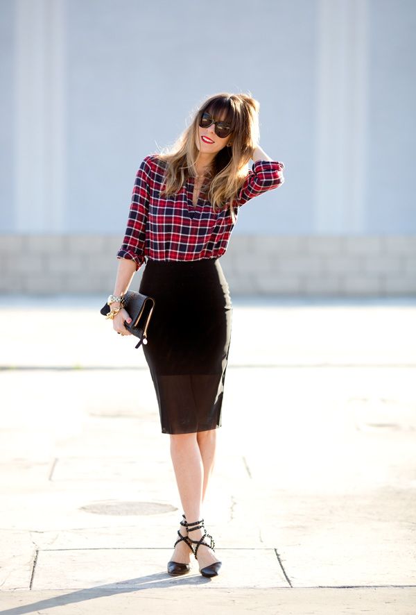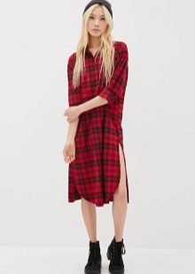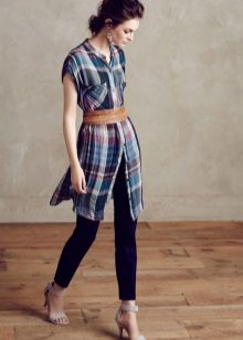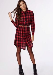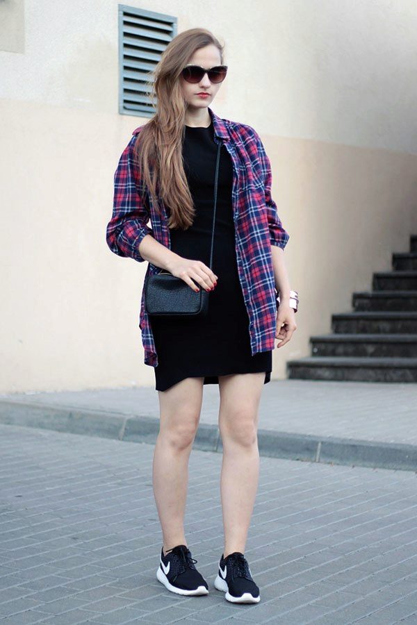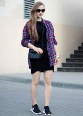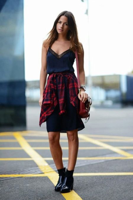 A plaid shirt will be a great addition to a dress made in the style of minimalism. Ideal for a simple black sheath dress. Throw it on top instead of a jacket or tie it over a belt. Get a stylish and unusual look that is suitable for any informal situation.