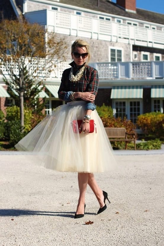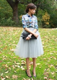 A plaid shirt will be appropriate even on a romantic date, if you wear it with a tutu-skirt. At first glance, such a tandem may seem unexpected, but such bold eclecticism will not leave your partner indifferent.
