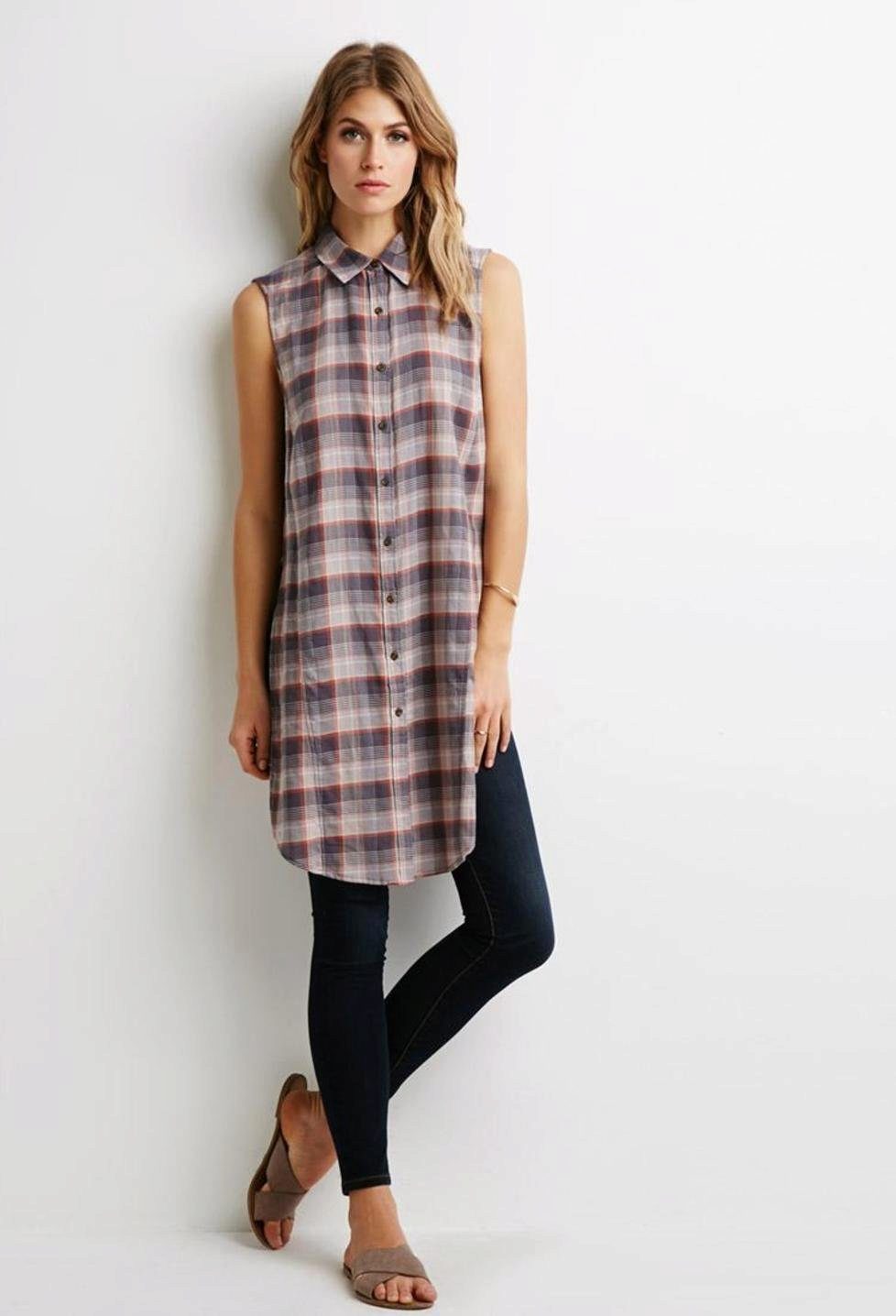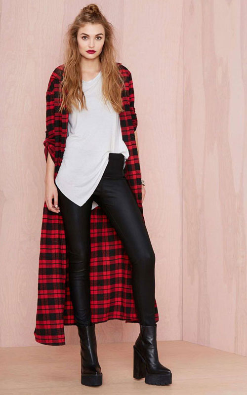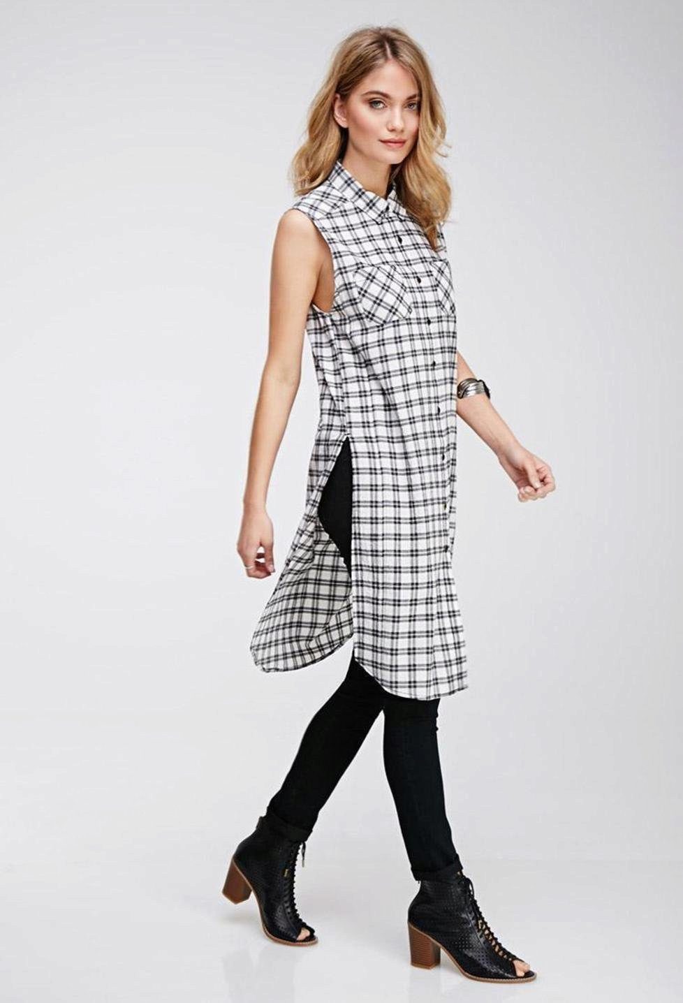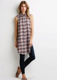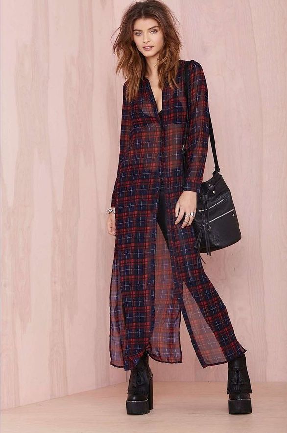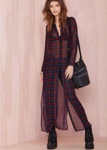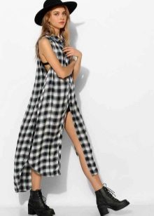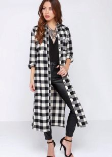 Today, many models of long shirts have cuts on the sides that reach the hips or waist. Taking advantage of this advantage, you can create a new image every time. For example, tying the front ends at the waist or tucked into jeans, allowing the back to fly in free flight, like a train. In a word - a long checkered shirt is a godsend for a real fashionista.