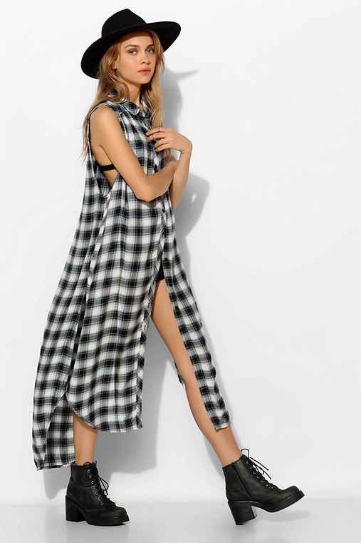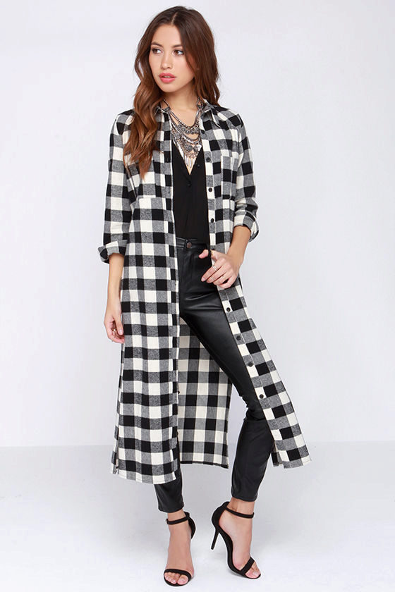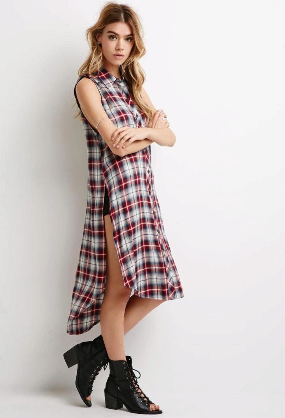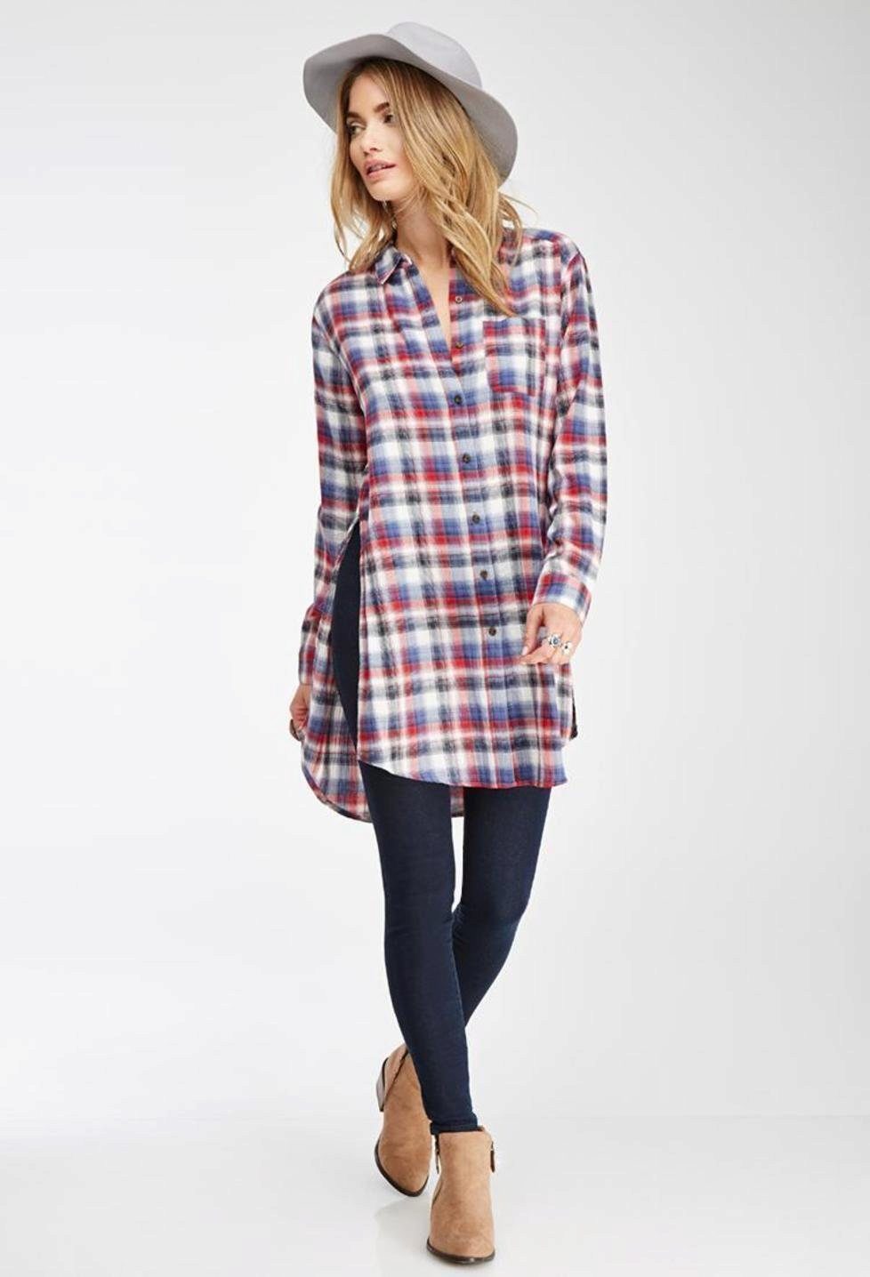 Today, many models of long shirts have cuts on the sides that reach the hips or waist. Taking advantage of this advantage, you can create a new image every time. For example, tying the front ends at the waist or tucked into jeans, allowing the back to fly in free flight, like a train. In a word - a long checkered shirt is a godsend for a real fashionista.
