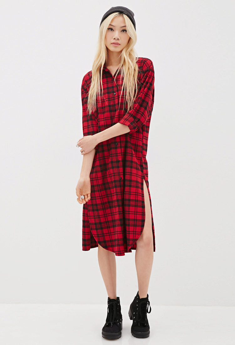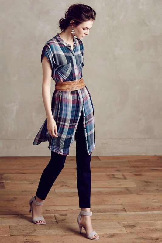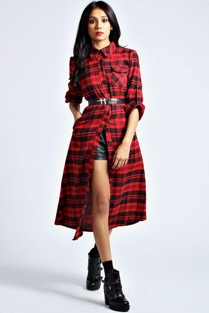 A long checked shirt is stylish, fashionable and very comfortable. You can wear it not only as a shirt, but also as a dress. Today, there are long shirts almost to the floor, so there is nothing easier than to emphasize the waist with a belt, put on a pair of favorite shoes and go for a walk or a date.