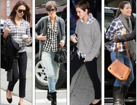 Do not forget all the well-known rule that says that you can not combine several checkered things in one image. Of course, there are exceptions, but only experienced stylists or people with a good sense of style can afford experiments. The small cage is suitable for thin girls, and the large one is, on the contrary, full. Pay attention to your physique before buying, it is a very important factor.