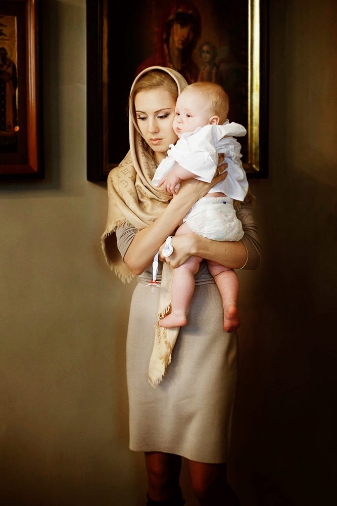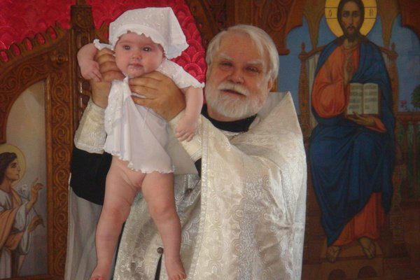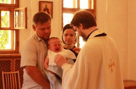 When they baptize very small children serving the temples, they are advised to keep them simply wrapped in a diaper from the beginning of the ceremony. Then the child is dipped in a font and wrapped in a kryzhma. After that, the godmother passes the baptismal shirt to the priest performing the rite. The father puts the baby in his shirt and the sacrament usually ends there.
