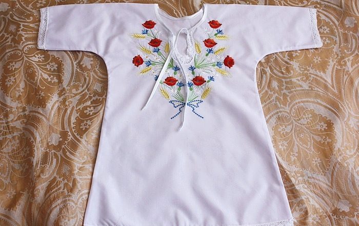 It has long been clothing for special occasions decorated with embroidery, as it was the most affordable way to decor. Today, shirts are most often embroidered with a cross, floral designs or the name of a child and the date of baptism.