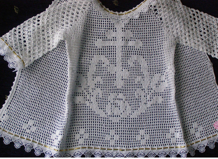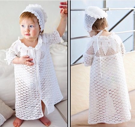 Which pattern to choose depends only on the imagination and experience of the needlewoman herself. For example, the baptismal knit shirts (mesh) with thematic drawings are quite popular; these may be angels, crosses, and other Christian motifs.