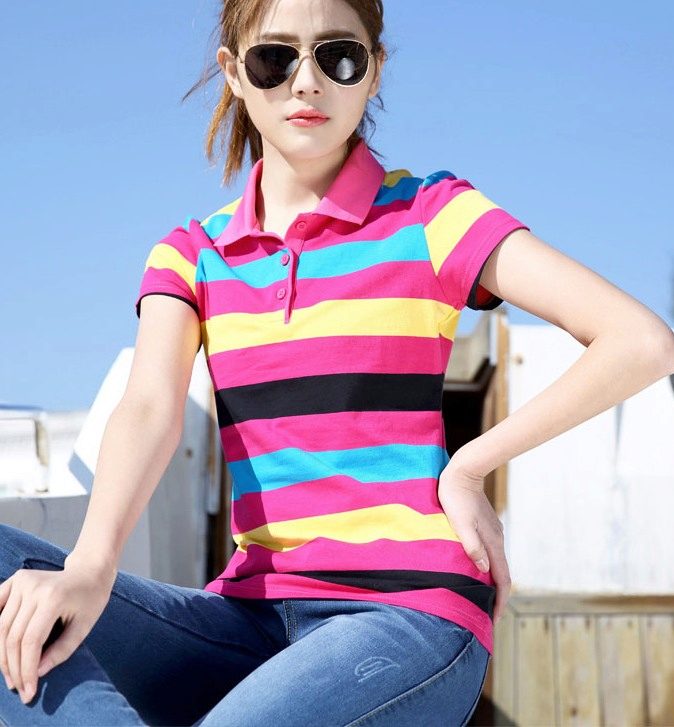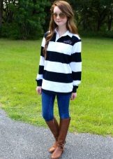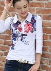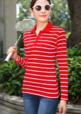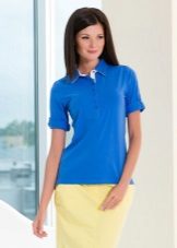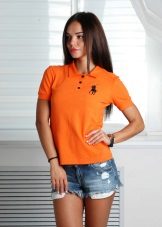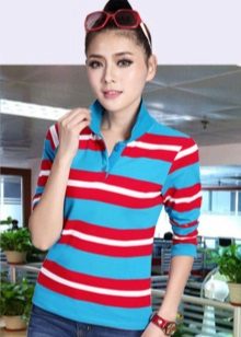 A polo shirt is more a sporting thing, but women of fashion love to combine it with various items of clothing, getting interesting and original bows.