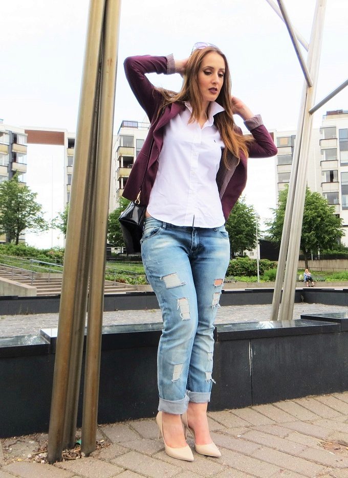 Pants with a polo shirt - in this tandem jeans as if specially created for polo, combining, you get an informal walking kit. Jeans style is allowed any - from boyfriends to skinny.