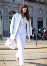 A great way to thin business weekdays is blue pants. For contrast, it is better to choose the bottom of a bright shade, so it will help to highlight the top. For a gentle image - gentle blue. And do not forget to focus on dyeing and accessories.