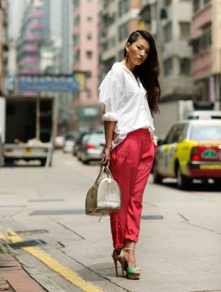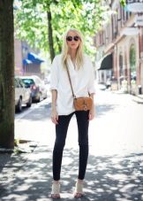 If you combine a white shirt with classic colors such as black, gray, white or blue, and the image seems a bit boring to you, add bright shoes or a bag.