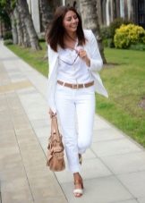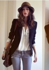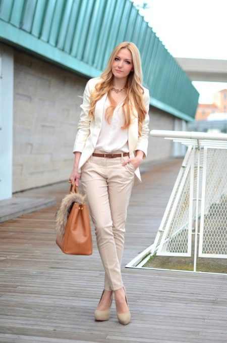 The jacket will give a severity to your style, the main thing is that its color harmoniously looks with the trousers. A basic shirt of white color, under a jacket or jacket, will make your image fresh, will emphasize the tone of your face.