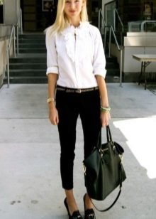 The ensemble is black + white - a classic timeless. Pants can be classic straight, short 7/8, flared or skinny skinny. This combination is the personification of something masculine in the girl’s wardrobe.