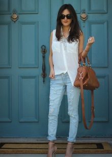 Frayed jeans will give your image some fashionable carelessness. In combination with a t-shirt, top, sweatshirt, you can create a casual look.